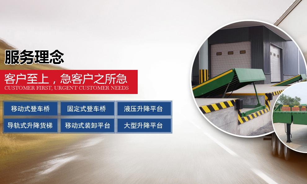 隨著國(guó)內(nèi)及國(guó)際市場(chǎng)需求的不斷擴(kuò)大,公司也在不斷引進(jìn)國(guó)內(nèi)外的先進(jìn)技術(shù)來充實(shí)自身。公司先后設(shè)計(jì)研發(fā)出了,大小型貨車配裝的:汽車液壓尾板,叉車裝卸貨用的:移動(dòng)式登車橋;庫房外貨臺(tái)配裝的:固定式液壓升降平臺(tái)(貨臺(tái)高度液壓調(diào)節(jié)板);庫房?jī)?nèi)外高層輸送貨物:導(dǎo)軌式升降貨梯,液壓升降平臺(tái),旋轉(zhuǎn)液壓升降臺(tái),及百噸位大型升降臺(tái),等多種的先進(jìn)裝卸裝備,適應(yīng)用于:工廠,廠礦,倉庫,化工,食品,郵政,流水線作業(yè)配套及物流運(yùn)輸?shù)缺姸囝I(lǐng)域。